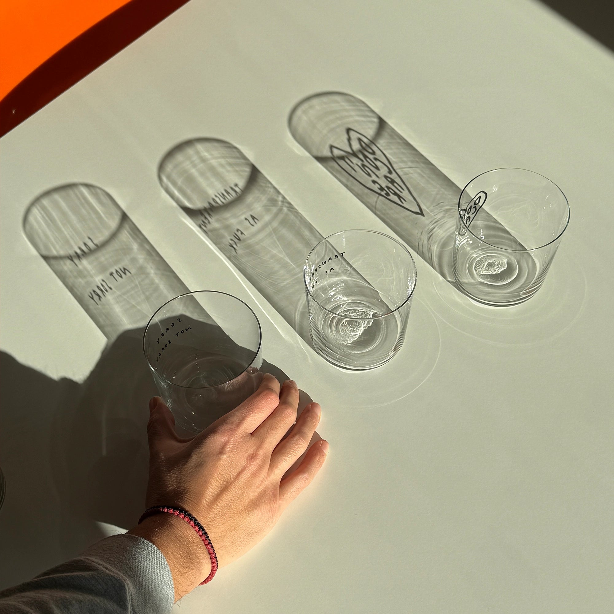 Art does not belong only on walls. We bring the illustrations of our co-founder into everyday life. Suddenly, the glass is no longer just a glass, but the home of an artwork right in the middle of your daily routine.